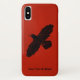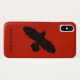 Une simple silhouette noire d'un Corbeau (Corvus corax) sur une image arrière - plan rouge, à l'aspect cuir. L'image du corbeau a reçu un léger effet "rugueux" ou "usé". Ajoutez votre propre texte.