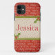 Ce coque iphone de Joyeux Noël est fait avec la baie de houx de gui et Noël de mots le Joyeux le long de l'arrière - plan. Vous pouvez customiser pour ajouter votre propre nom comme montré sur le cas