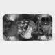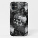 Coques iphone noirs et blancs à fond gris de crâne de goth. Cadeaux uniques d'accessoires d'iphone de motif de crâne pour Noël ou toute occasion.