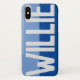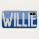 Faites afficher votre choix de nom avec audace sur un étui téléphonique à deux tons. L'exemple montre le nom de Willie. Personnalisez avec votre choix de nom court.