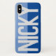 Faites afficher votre choix de nom avec audace sur un étui téléphonique à deux tons. L'exemple montre le nom Nicky. Personnalisez avec votre choix de nom court.