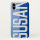 Faites afficher votre choix de nom avec audace sur un étui téléphonique à deux tons. Exemple montre le nom Susan. Personnalisez avec votre choix de nom court.