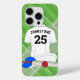 Front features a cricket shirt with customizable name and number, a cricket bat, ball, cricket cap and pads. The background features a cricket wicket and pitch