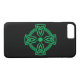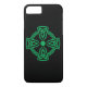 Le cas de téléphone avec une croix celtique avec 4 symboles de Triquetra est conçu en vert.