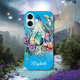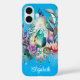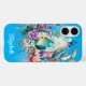 Ce coque iphone de rêve magique présente un grand cristal en forme de larme avec des fleurs délicates, du feuillage et des pierres précieuses accrochées à un arrière - plan bleu aqua. Personnalisé avec votre nom. Vous pouvez modifier la couleur ou la police de l'Arrière - plan à l'aide du bouton Modifier. Faites un grand cadeau pour les anniversaires, les diplômes ou Noël!