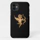 Silhouette d'or de cupidon dessinant de retour le sien arc, pour tirer environ sa flèche de l'amour.