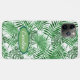 Contemporary light, medium and dark green and white tropical palm tree fronds pattern.With room to customize or personalize with name, monogram or initials of your choice. Beautiful, modern and cool cover for the trend-savvy and art-loving hip trendsetter, artsy motif lover who wants to protect their phone from dust and dirt, wear and tear. This design is available Apple iPhone 6, 7 and 8 Plus, 10 or X, XR, XS , 11, 12, and 13 Mini and 14 Pro Max cellphone cases. Show off your personal style, look fashionable trendy and feel stylish with a unique design on a mobile device accessory of your choice.