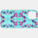 Coques Case-Mate iPhone Cute Girly Purple Flower Pattern on Aqua Blue