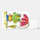 Il s'agit d'une peinture originale sur médias mixtes d'une grenouille verte fantaisiste assise sous une fleur rouge.