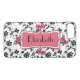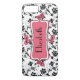 Vous pouvez personnaliser le nom sur ce coque iphone chic et tendance noir et blanc damassé floral, rose tag.