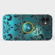 Coques Case-Mate iPhone DAMASK GEM MONOGRAM bleu aquamarine