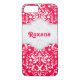 Damask motif électrique cramoisson rouge, blanc et gris cadre avec nom mignon girly iPhone 7 coque. Un design élégant entièrement personnalisable, contemporain, moderne et rétro à la fois. Vous pouvez le personnaliser et ajouter votre monogramme, vos initiales ou tout autre texte. Vous pouvez choisir parmi plus de 200 couleurs arrière - plans et changer le rouge en couleur de votre goût. Design chic et tendance, avec une touche vintage.
