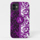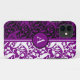 Caisses faites sur commande élégantes, colorées et belles et cadeaux pourpres, blancs et noirs de Coque-Compagnon de l'iPhone 4/4S de motif de damassé de monogramme pour la Saint-Valentin, les anniversaires, le Noël ou toute occasion. Ajoutez juste vos initiales !