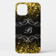 Étui pour smartphone à monogramme pour dames de classe avec initiale de nom vous pouvez personnaliser en ligne et des paillettes de ton doré en arrière-plan dans un design élégant pour dames ou filles.