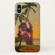 Cas de téléphone portable de style d'Hawaï avec l'art vintage de danseur de danse polynésienne devant un beau coucher du soleil de plage. Les palmiers et un danseur de danse polynésienne de jupe d'herbe, portant les leu traditionnels de fleur créent un distinctif et le dispositif de couverture attrayant pour des iphones la salutation hawaïenne traditionnelle aloha du fond du cas de téléphone portable est un secteur de modèle des textes qui peut être personnalisé ou supprimé avant l'achat en tant qu'élément des options pour facile conçoit en fonction du client.