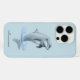 Étui iPhone élégant avec dauphin et écriture sur fond bleu clair. Idéal pour tout le monde. Idéal comme cadeau d'anniversaire. Le texte peut être personnalisé avec votre texte.