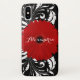 Ajoutez un beau contact féminin avec cette fleur rouge lumineuse mignonne de marguerite de gerbera, sur un fond noir et blanc de remous de damassé. Accessoire à la mode mignon et chic avec un motif floral vibrant de rouge cramoisi et des vignes et des rouleaux blancs de tourbillonnement sur un champ de noir. Gentil pour des femmes, des filles girly ou une amie affectueuse de nature.