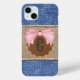 Ce design personnalisé de boîtier de téléphone ressemble à un denim avec cuir, burlap, corde, cuir et un arc rose. Grand cadeau pour n'importe quelle fille du pays !