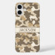Customize this multi-hued brown desert camouflage iPhone 16 plus case with your name in a trendy modern CAP font in brown on cream. It's masculine and perfect for your favorite military, hunting, country or outdoorsman!