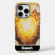 Conception vibrante de boîtier de téléphone représentant des mains tenant un cercle jaune éclatant, mettant en valeur la créativité et la chaleur. Le détail personnalisé du nom ajoute une touche d'individualité, ce qui en fait un excellent choix d'accessoires ou de cadeaux.