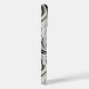 Ce boîtier téléphonique a un design rayé blanc et noir dessus.