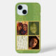 Ce design coque iphone moderne et tendance vous permet d'ajouter deux de vos propres photos et initiales monographiques, et il inclut également un design abstrait texturé feuilleté dans l'arrière - plan. L'avant a une grille avec un fond d'écran amusant comme des feuilles funky design, ainsi qu'une belle feuille dorée verte qui met vos initiales dans une couleur dorée. Assurez-vous de remplacer les photos de l'espace réservé par les vôtres - elles doivent être des photos de portrait verticales avec des proportions similaires - et d'ajouter vos propres initiales. Ce design apporte un peu de personnalisation, avec des photos d'amis et de famille, ainsi que la nature à votre téléphone que vous utilisez probablement tous les jours.