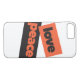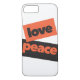 Design typographique moderne, simple et dynamique d'un dicton "Love Peace" aux couleurs orange et noire. Cool, urbain, tendance, audacieux et ludique art vectoriel graphique