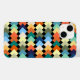 Ce boîtier téléphonique a une conception géométrique de diamants de couleur claire se chevauchant sur un champ de noir.