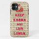 La prise humoristique drôle sur le slogan populaire "gardent calme" avec un thème bouddhiste. "Gardez le karma et vivez texte rouge de Longa" sur une illustration de livre vintage antique de Bouddha sur un arrière - plan de papier vintage.