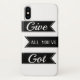 Boîtier de téléphone moderne et tendance avec drapeaux noirs avec l'expression "Donnez tout ce que vous avez" en blanc.