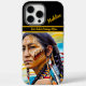 Une Indienne autochtone se tient en confiance, son visage peint de motifs traditionnels. Des plumes vibrantes se dégagent de ses tresses longues, reflétant son héritage culturel dans un contexte lumineux. REMARQUE Pour modifier des couleurs de texte ou de bordure, utilisez l'outil Modifier à l'aide de la conception