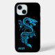 coque iphone d'Imaginaire fait en noir, avec des graphismes impressionnants d'un dragon de style chinois bleu turquoise. le texte turquoise, en bas, est prêt à personnaliser pour vous-même ou comme une idée cadeau exceptionnel à votre fan d'imaginaire préféré.