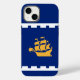 iPhone 13 Coque avec le drapeau de Québec, la capitale de Québec, Canada. Un drapeau bleu avec un contour blanc et un navire jaune au centre
