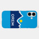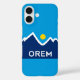 iPhone 16 Coque avec un design avec le drapeau d'Orem, Utah. Un drapeau bleu, blanc et jaune avec des sommets de montagne et le soleil au centre
