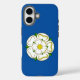 iPhone 16 Coque avec design avec un drapeau du comté historique du Yorkshire, en Angleterre, Grande-Bretagne; drapeau avec une rose blanche sur un champ bleu