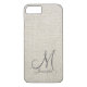 Coque monogrammé gris foncé personnalisé dans une police de caractères script superposition sur un arrière - plan d'effet photo en lin clair écru clair IMPRIMÉ. Customisez avec votre initiale et votre nom. Besoin d'un autre arrière - plan de couleur ? Utilisez le bouton personnaliser, retirez la couche de lin gris foncé de l'arrière - plan et choisissez la couleur que vous voulez!