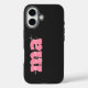 elegant black and pink monogram initial script name iPhone 16 case . modern simple black and pink white name script monogram iPhone case.