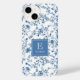 Coques Case-Mate iPhone Elegant Blue French Toile Pattern Monogram Name
