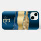 Coques Case-Mate iPhone Élégant Indigo Blue Agate Gold Sequins
