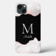 Élégant blanc rose or agate monogramme iPhone 13 coque.
