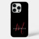 Élégant coque iphone de Monogramme Noir Rouge Moderne. Un élégant monogramme de script rouge combiné à une police blanche de san-serif fait un look contemporain.