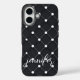 Ce coque iPhone 16 personnalisable offre un look élégant et luxueux pour ceux qui se soucient de leur image. Il est dominé par un motif en pointillé noir et blanc. Modifiez simplement le texte avec le nom de votre ami et créez le cadeau parfait pour votre ami.