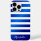 Créez un élégant étui téléphonique personnalisé avec un motif rayé bleu et blanc. Les bandes bleues imitent la surface métallique. Le modèle de texte permet de customiser facilement l'étui téléphonique avec votre nom.