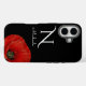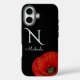 Coques Case-Mate iPhone Élégant pavot rouge monogramme sur noir