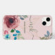 Coques Case-Mate iPhone Élégant Peach Pink Botanical Roses Monogramme Nom