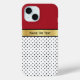 La partie supérieure présente une teinte rouge vif, tandis que la partie inférieure présente un motif frappant de pois noirs contre un arrière - plan blanc immaculé. L'élégante bannière dorée reliant les deux est l'espace parfait pour la personnalisation ; ici, vous pouvez ajouter votre nom ou un bref message en lettrage noir élégant. Il allie harmonieusement le raffinement classique à l'esthétique moderne, ce qui fait de votre appareil un personnage exceptionnel.