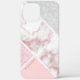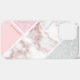 Coque iphone géométrique élégant. Combinaison moderne de parties scintillant d'or faux rose texture de marbre, rose, argent et rose or faux parties scintillant bloc de couleur. Ajoutez votre nom ou tout autre texte.