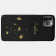 Étui téléphonique classique, chic et simple. Des spangles d'or décorent minimalement ce coque arrière - plan noir. Personnalisez avec votre nom de destinataire. Élégant !