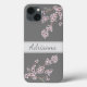 Prénom personnalisé élégant fleurs de cerisier zen rose charme sur gris clair arrière - plan coque iphone est un mélange parfait de nature et de style. Personnalisez-le avec votre, ou un nom pour un cadeau réfléchi et féminin.