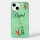 De délicieuses fleurs fleuries agrémentent ce coque iphone d'un arrière - plan d'aquarelle verte. Personnalisez avec votre nom ou votre destinataire en lettres vert foncé.